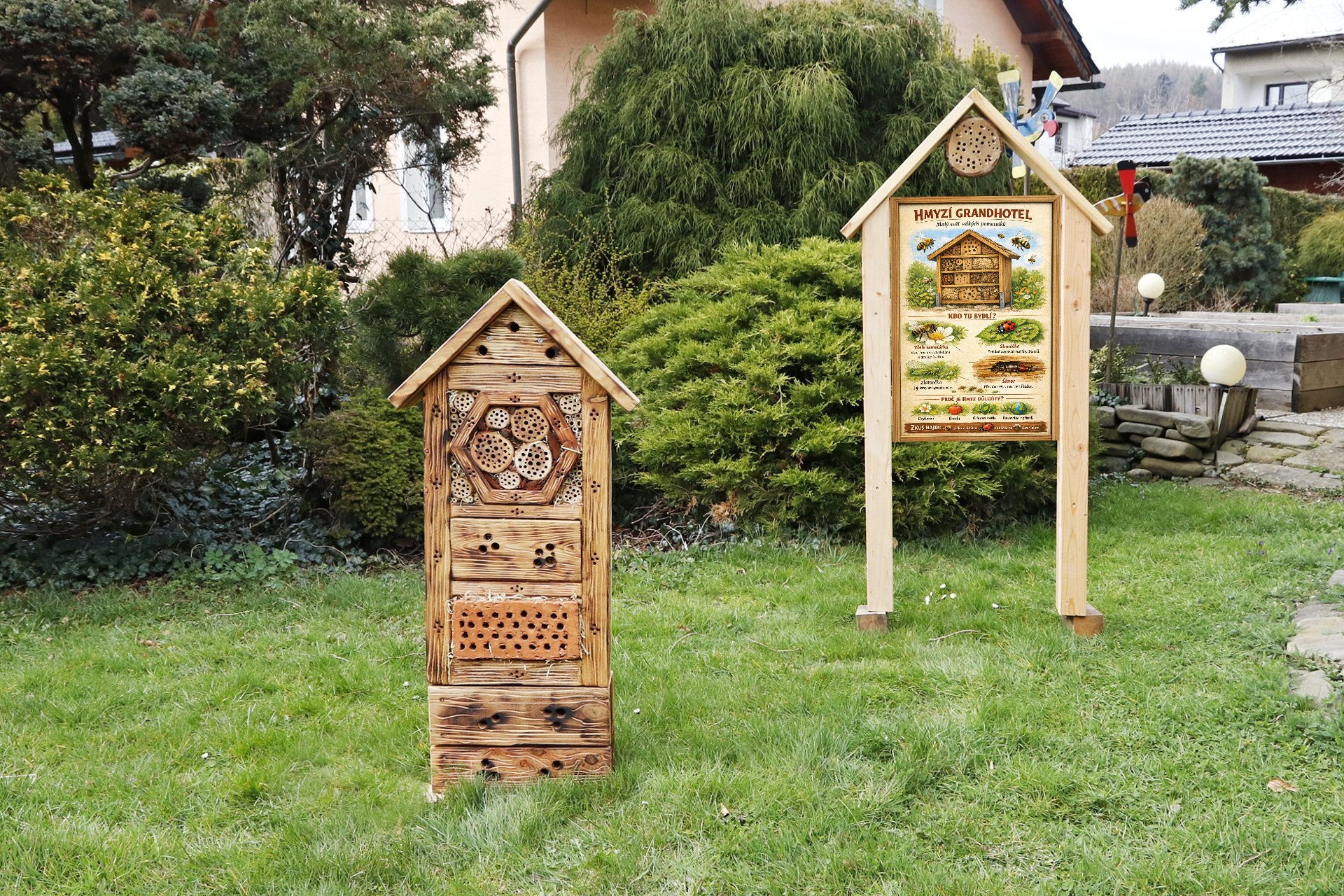 Spojením hmyzího hotelu a naučné tabule vzniká funkční a smysluplný celek, který nejen podporuje biodiverzitu, ale zároveň vzdělává a inspiruje. Ideální řešení pro obce, školy i soukromé projekty, které chtějí dát přírodě prostor a lidem porozumění.